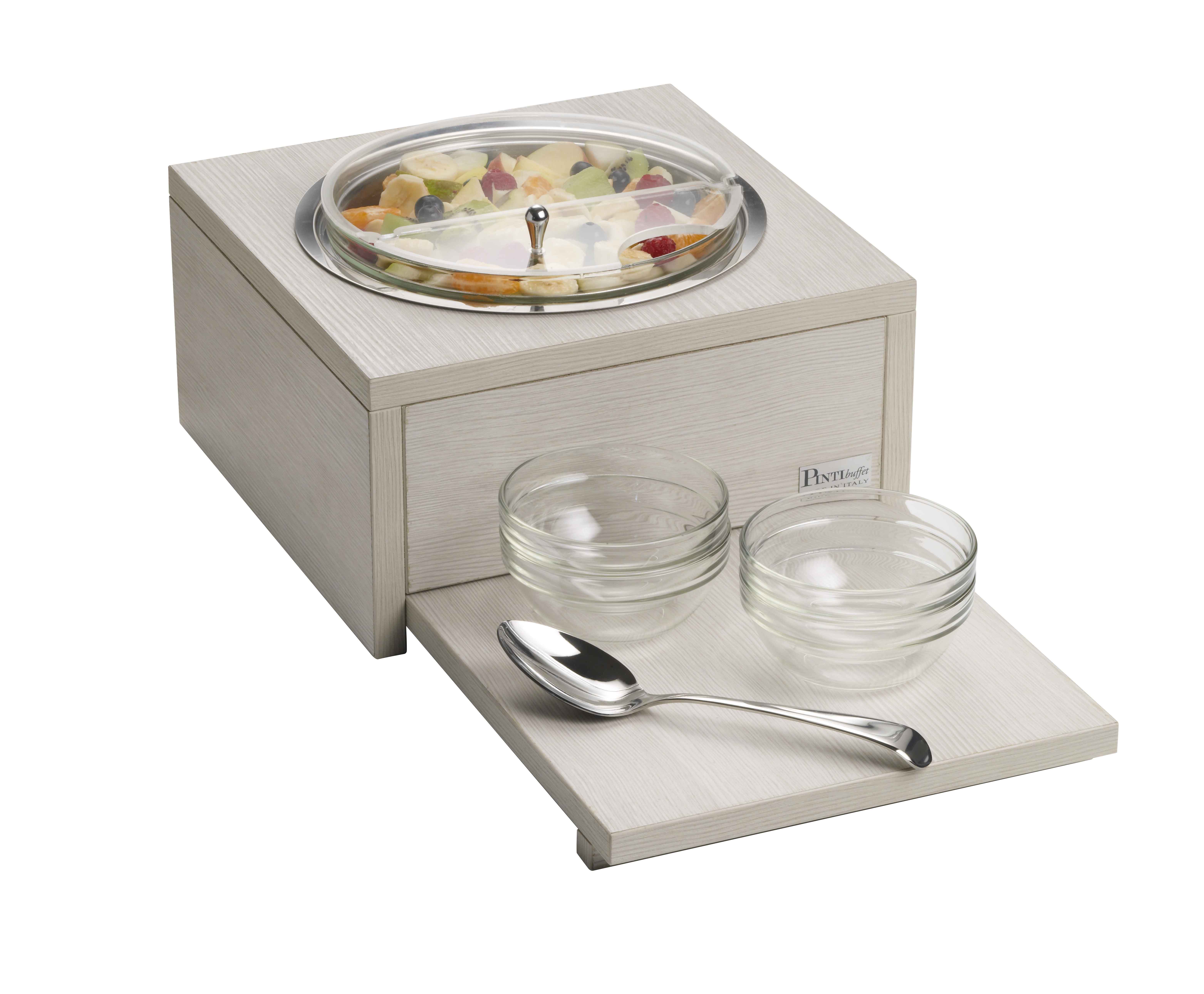 Eleganza e attenzione nei particolari, igiene e versatilità: ogni articolo può essere usato a temperatura ambiente oppure refrigerato con speciali mattonelle refrigeranti, per un ricco buffet pronto per ogni occasione.