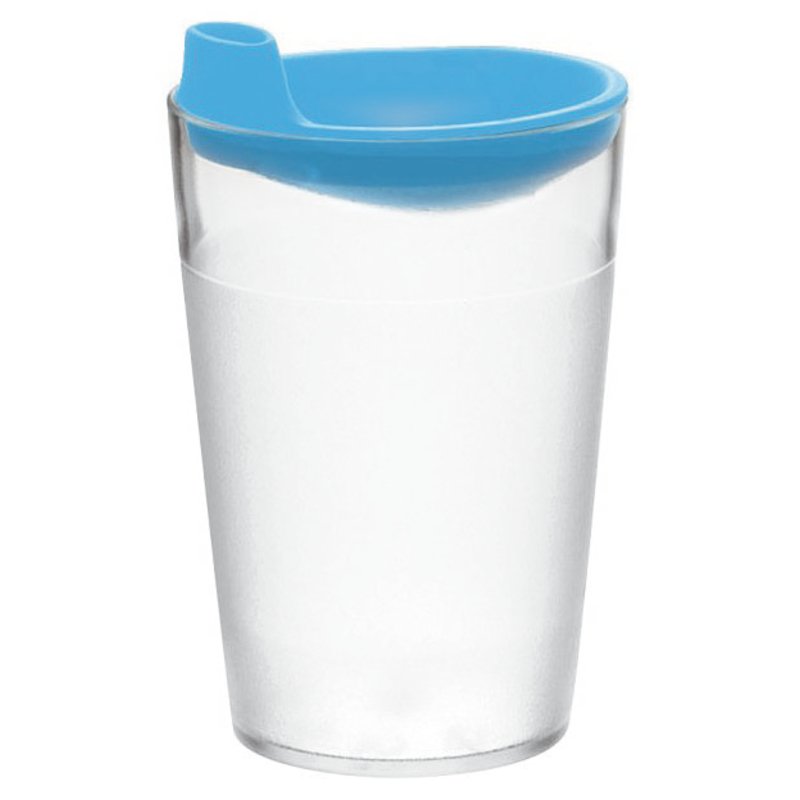 Coperchio azzurro con beccuccio per bicchiere infrangibile Acqua da 250 ml in policarbonato