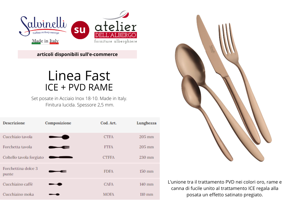 Salvinelli da più di cinquant’anni dedica energie creative e produttive per la realizzazione di posateria ad alto valore. Salvinelli è nata e tutt’ora ha sede a Lumezzane (Brescia) in val Trompia, il distretto storico delle industrie che lavorano i metalli. Propongono posate raffinate per hotel, ristoranti e per una clientela di classe.