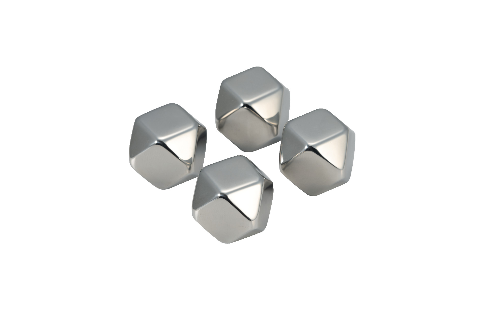 4 Ice Cube in acciaio Inox riutilizzabili a forma di poliedro a 14 facce, riutilizzabili.