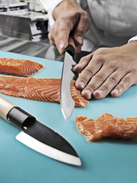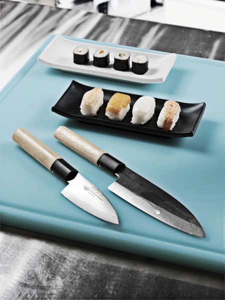Coltello DEBA Serie Japanese Sushi di Paderno, affilato e dalla lama pesante, usato per disossare e tagliare il pesce utilizzato nel sushi. E simile ad un coltello da chef.