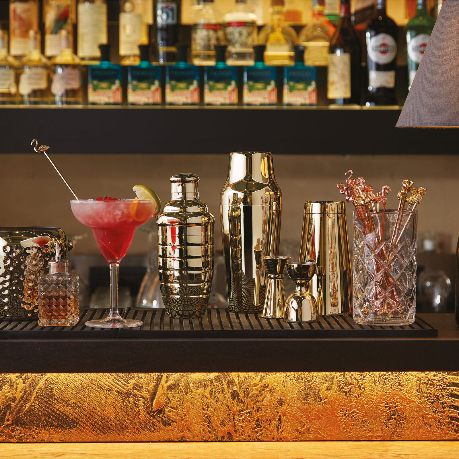Misurino cocktail a forma di doppia coppa per la preparazione di cocktail, in Acciaio inox colore oro, doppio 30 ml e 60 ml, di Paderno