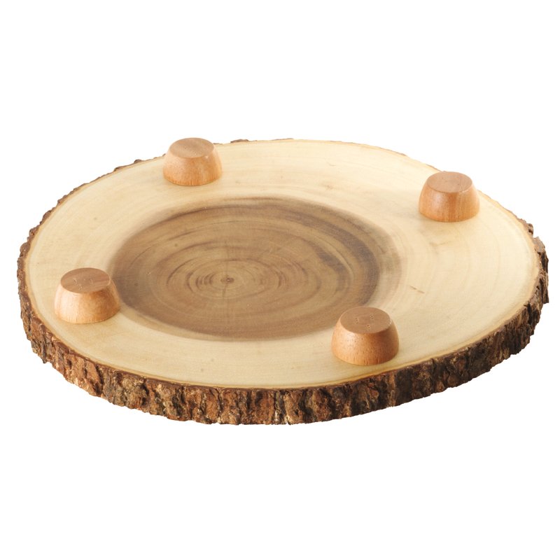 Tagliere per buffet o a servire in legno di acacia con corteccia di Paderno, circolare.
