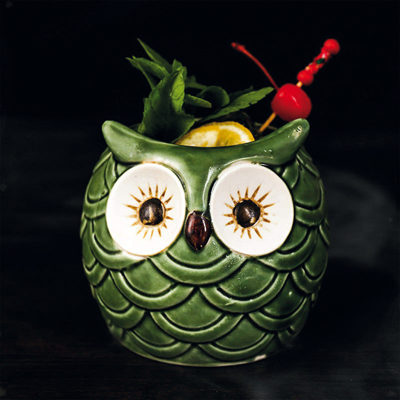 Tiki Mug decoro 12 GUFO, in ceramica di Paderno, ø 10 cm h 10 cm capacità 400 ml